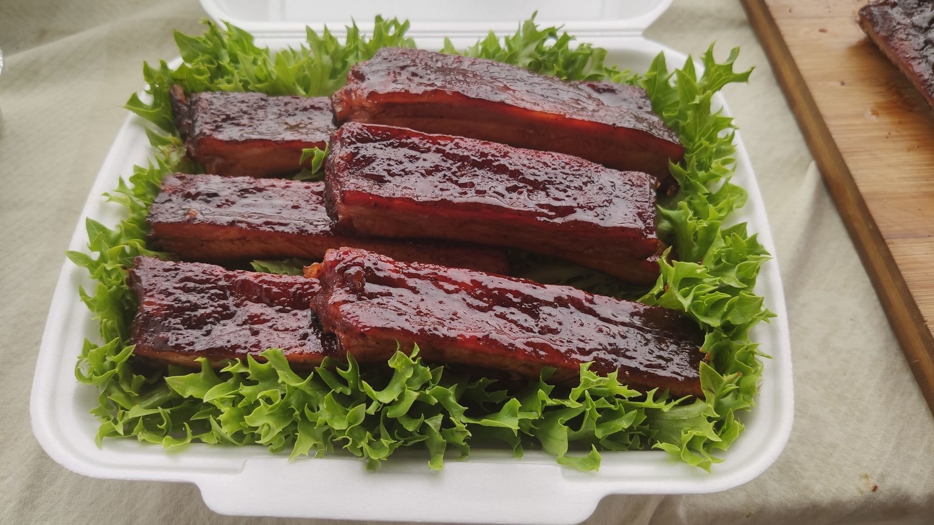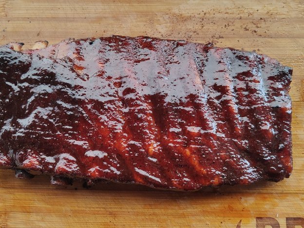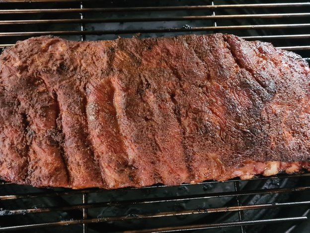 U mäsiara si objednáme čo najmäsitejšie rebrá (prípadne celý kus boku). Rebra upravíme do pravidelné veľkosti a očistíme od prebytočného tuku. Na povrchu by malo byť mäso a nie tuk. Zo spodnej strany odstránime blánu. Pomocou príborového noža blanu nadvihneme, chytíme do kuchynskej utierky a stiahneme. Povrch rebier. ľahko potrieme plnotučnou horčicou, aby na tom lepšie držal BBQ RUB, ktorým rebrá následne bohato posypeme zo všetkých strán. Necháme 30 min. odpočinúť, roztopíme gril na nepriamu metódu na 120 °C. Pridáme ovocné drevo na zakúrenie a vložíme rebra. Po 1 hodine každých cca 20 min. postriekame jablkovým džusom. Grilujeme 2,5-3 hodiny, dokiaľ sa nám neurobí úžasná kôrka. Vyberieme na alobal, posypeme trstinovým cukrom, přidáme trochu medu, BBQ omáčku, máslo a dôkladne zabalíme do 2-3 vrstiev alobalu. Vrátíme do grilu a necháme dělat další cca 1,5 hod, po hodině začneme zkoušet, jak jsou žebra měkká, když jsou dle našich představ, žebra vyndáme, výpek slijeme a žebra s ním znovu důkladně potřeme a vrátíme do grilu na zaschnutí. Potřená a zaschnutí můžeme opakovat, ale pozor abychom žebra nepřevařili. Správně udělaná žebra jsou že nejde kost vyndat, ale maso jde krásně odkousnout od kosti. Pokud jde kost vyndat jsou udělaná příliš, ale určitě budou také vynikající. Nakrájíme a servírujeme. Výpek můžeme ještě trochu zredukovat a podávat jako přílohovou omáčku.